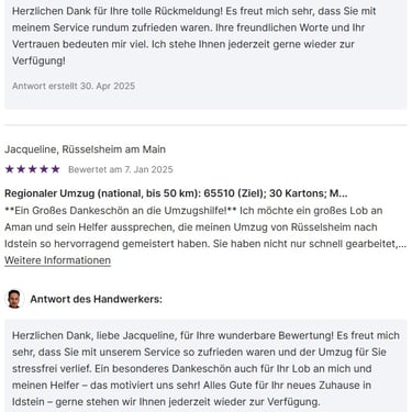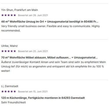 Ganz gleich, ob Sie innerhalb der Stadt umziehen oder Ihre Wohnung für den nächsten Lebensabschnitt vorbereiten, wir sind für Sie da, um den Prozess reibungslos, zuverlässig und sorgenfrei zu gestalten.